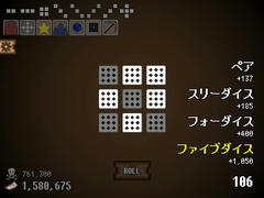 Unity製のゲームで操作はマウスクリック。ROLLを選ぶと自動でサイコロが振られて出目の内容によって加点される。1回ごとにランダムに3つ表示される中からアップグレードが可能。ノルマが徐々に上昇して達成できないとゲームオーバー、70ターン目まで行けばクリアとなる。