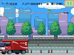 自動で走るキャラを車線変更させて車を避けつつ瓶を取っていく。コーラの瓶を10本集めつつ時間以内にゴールすればクリア。途中で車に当たると減速するほかコーラの瓶を落として割ってしまったりする。また青い瓶を取ると加速、緑の瓶だとスコアアップ(?)の効果がある。