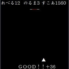 スペースキーを押すと左右に自動で動く三角から上に線が出る。画面上方にある的っぽい横線にそれが当たると得点、赤い部分に当たると高得点となる。のるまの数だけ当てるとだんだん横線が短くなっていく。1発でも外すとゲームオーバー。まぁただのミニゲームという感じで個人的にはあまり楽しめなかったかな。神モードなんかも含めてもう少し短くなるスピードとかのバランスが練られていると良かったんじゃないかね。