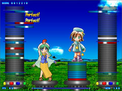 音楽に合わせて柱っぽい部分を白いバーが下降するので、それが色の付いたバーに重なるタイミングでz、x、c、v、のうち対応するキーを押す。ゲームは全て対戦形式で、チップが一定量に達するか曲の最後にチップが多いと負けになる。ミスをすると自分のチップが増加、タイミングが合っていてPerfectが出ると自分のチップが減少して相手のチップが増える。