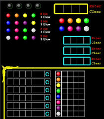 あらかじめ8色の玉から4つの組み合わせが正解として設定されている。プレイヤーが4つの玉を並べると、正解に対して色と場所が両方合っている数と色だけ合っている数がそれぞれ表示される。これを何回か繰り返した結果を元に推理して正解の組み合わせを当てるのが目的。