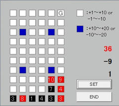 左下のスタートから右上のゴールまで1マスずつ進んでいく。マスには数字が隠されていて通るとそれが加算され、ゴールした時点で数値が60を超えていればクリア。数値が足りそうにない場面でどの程度回り道するかの選択はあるけど、まぁ数字は見えないので基本はただの運ゲーですな。また20からのスタートでプラスとマイナスが等確率(たぶん)で目標が60と言うことで難易度は結構高い。せめてプラスが出やすいマスとか何かもう一工夫あれば・・・、いやそれでもダメか・・・。