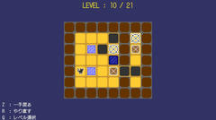 Unity製のゲームで操作はスペースキーで決定、矢印キーで移動、zキーで1手戻す、rキーでリトライ、qキーでステージセレクトとか。ステージ内で自機を動かして箱を押していく。ターゲットとなる床に全て物が乗った状態となればクリアとなる。クリア状況のセーブは自動で行われる。