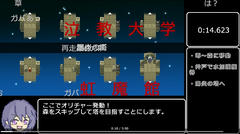 難易度は低め。攻略法は画面内に出ているのでそれを参考にすれば全然難しくないはず。ニコニコの某動画を意識したような構成は面白く、本来のチャートを無視した際の反応がしっかり用意されている点は良いね。プロローグの文章や明らかに持って落ちたくなる塔とかのギャグ要素も面白く個人的にはそこそこ楽しめました。はい。あとは終盤の仕掛けとかは微妙で、ゲーム的にはちょっと物足りなかった感じはある。