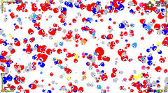 操作はマウスの左クリックで決定、右クリックでキャンセルとか。大阪万博のキャラクター「こみゃく」がステージ内を自由に動き回り、出会うと法則に従って分裂したりする。四隅のバーを動かすことでパラメータを弄ることが出来る。