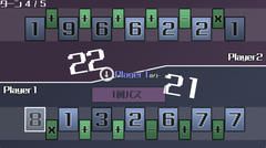 ウディタ製のゲームで操作はだいたい矢印キーでカーソル移動、z決定とか。COMと1対1の対戦で、数字カードと演算子カードを使ってその計算結果の数字を大きくするのが目的。互いに1ターンに1回カードの入れ替えが可能、また2ターン目以降は自分と相手のカードの交換も出来たりする。規定のターン数が終わった時点で相手より大きければクリア、差がランキングとして記録される。