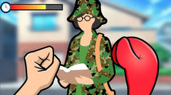 Unity製のゲームで操作はマウスクリックで決定、zキーで左手で合図、xキーで右手でパンチする。宗教の勧誘を撃退するのが目的で、教本を持っているかカバン、メガネ、帽子、服の色の4要素のうち3つ以上が当てはまっている場合は勧誘者なのでパンチ、いずれも違う場合は合図する。間違えるか時間切れは即ゲームオーバーでスコアが記録される。