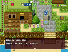 ツクールMZ製のゲームで操作は矢印キーで移動、z決定、xキャンセルとメニュー(一部マウス可)。基本はRPG風でフィールドを歩き回ってイベントをこなしてパーティーを強化していく。敵の数値をこちらのパワーが上回っているか条件を満たしていれば倒すことが可能、3分以内に魔王に勝利するのが主な目的のほか実績が色々と用意されてたりする。