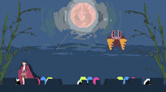 Unity製のゲームで操作はスペースキーで開始、f、g、h、j、kキーで対応するユニットが立ち上がる。上から降ってくる敵に対してユニットを使って守っていく。敵が地面に達すると月が欠けてこれが無くなるとゲームオーバーとなる。難易度は低めで、途中の猛攻は結局防ぎようがないのかな。昔話を元にした舞台設定やグラフィックは悪くは無いけど頑張って耐えるような感触は薄く個人的にはあまり楽しめなかったよ。自分の最高は90秒ぐらいでした。