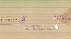 Unity製のゲームで操作はマウスクリックで決定、ドラッグで線を引く。ステージ内に線を引くとその上を自機が動く。最後まで行くか邪魔な人にぶつかると終了、エンディングを集めるのが目的だと思う。難易度は低めで、雑に引いても結構従ってくれる感じですかね。毎回最初からというのは多少面倒だけどまぁそれほど時間は掛からず、個人的にはそれなりに楽しめました。はい。一応8つ全部見れたよ。