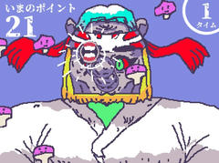 Unity製のゲームで操作はマウスクリックで決定、ドラッグで口を動かして吸う。ステージ内を飛び交う食べ物を取ると加点、ウイルスを食べると減点される。30秒の時間内で高得点を目指す。難易度は普通ぐらいで、このゲームはとにかく減点が大きすぎるのが難点かなぁ。加点が+1と+3なのに対して一発で-20ってさすがに酷いでしょ。稼いだスコアが台無しになる感触はイマイチで個人的にはあまり楽しめなかったです。はい。自分の最高は50点。