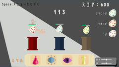 Unity製のゲームで操作はマウスクリックで決定、ドラッグでスキルの移動。スキルを台座に持っていくと台座がその属性に変わる。卵は時間経過でゲージが減って無くなると孵化して加点、「つぎ」の卵が空いた台座に置かれてその際に属性が一致しているとボーナス加点がある。左の台座の方がゲージの減りが早く、また属性の一致でも早くなる(反対の属性だと遅くなる)。120秒の時間内で高得点を目指す。