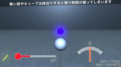 Unity製のゲームで操作はマウスクリックで決定、ドラッグで方向を決めて離すと突進、rキーでリトライ、sキーでステージセレクトに戻るとか。3Dのステージ内で自機の玉を動かして他の玉とかに当てていく。規定数当てればクリア、時間切れは失敗でやり直しとなる。
