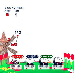 Unity製のゲームで操作はマウスクリックで決定、ゲーム中はuキーで売る、kキーで買う。チューリップの売買をする内容で、価格が自動で変動するので安い時期に買って高い時期に売ることで稼いでいく。3分ぐらいで終了、プレイヤーとライバル4人の合計がスコアになるほかランキング登録(終了済)にはプレイヤーの1位が必要となっている。