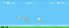 Unity製のゲームで操作はマウスクリックで決定と長押しでヤリを構えて放つ。ある程度離れた敵に穂先を当てると倒して加点、次の敵が出現する。300秒の時間内で高得点を目指す。難易度は高めで、ヤリの操作性が悪くしっかり狙いを付けるのは結構大変。なかなか当たらなかったり近すぎて弾かれたりする感触はイマイチで個人的にはあまり楽しめなかったよ。自分の最高は3808点でした。