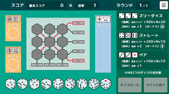 Unity製のゲームで操作はマウスクリック。9つのダイスを3×3のステージ内に入れてポーカー的な役を作っていく。内容によって加点、さらにボーナスが付いたりする。3ラウンド終了時のスコアが記録される。