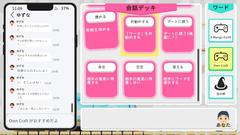 Unity製のゲームで操作はマウスクリック。会話の内容を選んで送信するとそれに対する反応が起きたりシナリオが進んだりするらしい。進めるたびに充電の数値が減って無くなると終了となる。