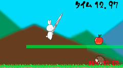 操作はマウスクリックで決定と攻撃、aとdキーで移動、wキーでジャンプとか。アクション系のゲームで自機を操作してステージを進んで行く。敵に当たるか落ちると手前からやり直しとなる。難易度は普通ぐらいで、視界が狭いので結構やられやすい感じですかね。操作性はイマイチで敵がやたら硬かったりするのは微妙、またパワーアップのはずのニンジンが逆効果になったりするのも難点で個人的にはあまり楽しめなかったです。はい。ノーマルは一応クリアしたけどRTAはやる気にならなかったよ。