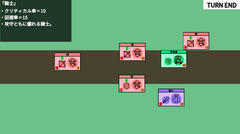 Unity製のゲームで操作はマウスの左クリックで決定、ドラッグで移動、右クリックで武器や装備の切り替えとか。ステージ内のユニットを動かして相手のユニットに重ねることで攻撃を行う。自軍に加えて敵軍もプレイヤー側が操作(武器等はターンごとに固定)して、全員の行動回数が無くなったらTURN ENDで次のターンへ、敵を全滅させると勝利で次のステージに進む。こちらが全滅すると最初からやり直しとなる。