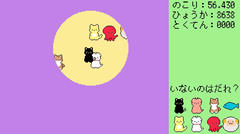 Unity製のゲームで操作はマウスクリック。クリック長押しでステージ内を探してその中にいない動物を右下の一覧から選んでいく。当たれば経過時間によって加点、外れると当たった際の加点が減る。60秒の時間内で高得点を目指す。難易度は低めで、重なることもあるのでパッと見では厳しいかもしれないけどまぁそれほどシビアでは無いはず。一応スコアを狙う要素もあるけどまぁ子供向けの薄味という感じで個人的にはあまり楽しめなかったかなぁ。自分の最高は52647点でした。作者強すぎる。