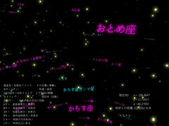 Unity製のゲームで操作はマウスクリックで決定とその場所に移動、ドラッグで視点移動、wsadキーとq、eキーで移動、それ以外にもいろいろと操作があったりする。地球を中心に星座を構成する恒星が3D空間のそれっぽい位置にあるので適当に眺めたり移動したりする。まぁあまりゲームという感じではないのかな。地球以外の視点で星を眺められるというアイディアは悪くはないけどなんかごちゃごちゃしてるだけという感じもあって個人的にはあまり楽しめなかったかなぁ。星の大きさや色のこだわりとかも欲しかったかも。
