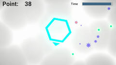 Unity製のゲームで操作はマウスカーソルで自機の移動、クリックでポイントの設置とか。六角形の自機を操作してステージ内で緑の物に触れると加点、一定数ごとに大きくなって時間も回復する。トゲに当たると減点、時間切れでゲームオーバーとなる。難易度は普通ぐらいで、序盤は簡単だけど大きくなるとどうしてもトゲに当たっちゃう感じですかね。ポイントも失点に対しての効率が悪い印象で伸ばし方もわからず、個人的にはあまり楽しめなかったよ。自分の最高は78点。