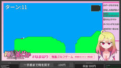 難易度は普通ぐらい。後半に難しい場面がいくつかあるのでピンポイントで決めるのは結構大変かも。池ポチャの5打罰という重さと時を戻す機能は上手く噛み合っている印象、また配信風のデザインは良く出来ているしボイスやコメントもクオリティが高く個人的には結構楽しめました。はい。コースが1つだけなのがやや惜しい。自分の最高は15打でしたー。