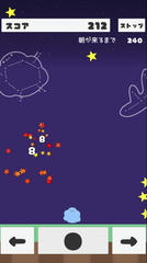 Unity製のゲームで操作はマウスクリック(一部キーボード可)。ステージ下部の自機を動かして降ってくる星を迎撃していく。星が自機に当たるとミスで連打で復活、連打が間に合わないとゲームオーバーとなる。難易度は普通ぐらいで、自機が緩慢なので結構当たっちゃう感じですかね。いわゆる某カブトムシゲームみたいな感じだけど連鎖とかは少なく爽快感に欠ける印象で個人的にはあまり楽しめなかったかなぁ。自分の最高は2586点でした。
