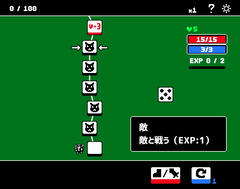 Unity製のゲームで操作はマウスクリック。基本はすごろく的な感じでダイスを振って出た目の数だけ進んで行く。敵のマスでは戦闘が発生、互いにダイスを振って出た目の数だけダメージを与えあう。MPを消費して振り直しが出来るほか途中でスキルの入手も可能、100マス目にいるボスを倒せばクリアとなる。