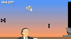 Unity製のゲームで操作はマウスクリックで決定と発射。左から骨みたいな何かを発射して密勅を右に飛ばしていく。城が落ちるとゲージが上昇、上まで溜まるとクリアとなる。難易度は低めで、まぁ適当に撃っていればその内終わる程度かな。ただこの画像のように端で城が柱に乗るとなかなか動かなかったりしてその辺の操作性は微妙、個人的にはあまり楽しめなかったよ。自分がクリアした際は95秒ぐらいでした。