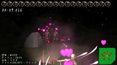 難易度は低めかな。ゾンビの位置はミニマップで確認できるし連打でパパパッと処理すればそれほど時間は掛からないはず。ホラーな雰囲気に対してハートマークが乱れ飛ぶというナンセンスさは面白く、ゲーム的にはやや物足りなさもあるけど個人的にはそこそこ楽しめました。はい。自分の最高は66秒でしたー。