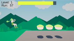 Unity製のゲームで操作はマウスクリックで決定とジャンプ(2段ジャンプ可)。自動で進む自機を操作して進んで行く。上のゲージは時間経過で減少して餅を取ると回復、これが無くなるか落ちるとゲームオーバーで距離が記録される。難易度は普通ぐらいで、床のパターンはいくつかしかないのでそれを覚えればある程度続けられるかな。速度等の設定は悪くはないけど餅を取ろうとするとその先で落ちたりといった意地悪な点もあったりしてその辺の感触は微妙、個人的にはあまり楽しめなかったかなぁ。自分の最高は3075mでした。