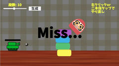 Unity製のゲームで操作はマウスの左クリックで決定と射撃、右クリックでリセット。自機の戦車を操作してブロックを飛ばしていく。だるまが下にちゃんと着けばクリア、傾くと失敗となる。難易度は普通ぐらいで、2段抜きも出来るしデフォルトの5段なら割と簡単かな。物理演算とかはしっかりしている印象で個人的にはそこそこ楽しめました。はい。ちなみに自分の最高は20段だけど10段以上になるとほとんど連打の運ゲーになるのは微妙かなぁ。正攻法で行ける仕様にして欲しかった気もする。