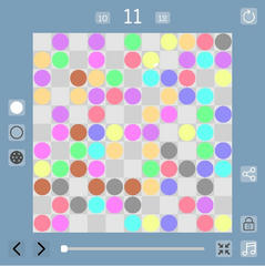 Unity製のゲームで操作はマウスクリック。色の無いマスをクリックした際に上下左右の直線状に最も近いマス同士で同じ色があればそれらが消える。ステージ内を全て消せばクリアで次の盤面が解放される。難易度は普通ぐらいで、3つ同時に消さないことを意識するのがコツになるのかな。基本的な部分はまぁ何度か見かけたような内容で悪くはないけど目標が薄かったりするのはイマイチで個人的にはあまり楽しめなかったよ。この画像は自分の最大サイズ11×11だけどもう十分な手応えでこれ以上広げても不毛なだけにも見える。20以上をクリアした上位陣はすごい。