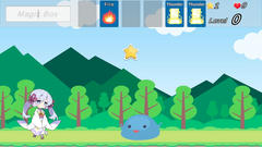 Unity製のゲームで操作はマウスクリックで決定、キーボードで文字入力とか。自動で進む自機を操作してステージを進んで行く。入力した文字列が特定のワードならその効果が発動、主に上の手札に表示されている魔法を使うことで敵を攻撃していく。100体目まで行けばクリア、自機が敵にぶつかると右上のライフが減ってこれが無くなるとゲームオーバーとなる。