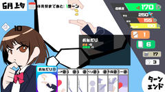 Unity製のゲームで操作はマウスクリック。カードゲーム的な内容で手札を使って主人公ちゃんのステータスを上げていく。1ターンに使えるカードは基本3枚まで、またコストで払うお金は月始めに補給される。特定のタイミングで行事があって勝つと信頼度が大きく上昇、3月下旬が終わった時点での信頼度が最終的なスコアとなる。