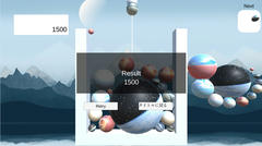 Unity製のゲームで操作はマウスクリックで決定、aとdキーで移動、スペースキーで落下。いわゆる某スイカゲーム的な感じで景色のボールを落として同じものが2つ以上くっつくとそれらが合体して1段階大きくなって加点される。容器から上に飛び出るとゲームオーバーとなる。