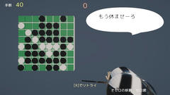 Unity製のゲームで操作はマウスカーソルで手の移動、rキーでリトライとか。基本のルールはリバーシだけど石がランダムに降ってくるのが特徴。相手の石を挟めない場所に置こうとした場合手で弾いていく。間違って置かれると即ゲームオーバー、正しい着手の場合はスルーすると盤面が進んで手数が増加する。150秒の時間内で高得点を目指す。