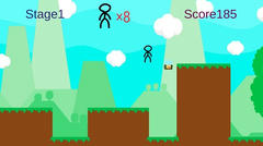 Unity製のゲームで操作は左右キーで移動、上キーでジャンプとか。横スクロールのアクションゲームで棒人間の自機を操作してゴールを目指す。敵に当たったり落ちたりすると手前からやり直し、残機が無くなるとゲームオーバーとなる。難易度は高めで、操作性が悪く慣れるまでは何度も死ぬことになるはず。特に着地時のジャンプ暴発が酷いし当たり判定もわかりづらかったりで個人的にはあまり楽しめなかったよ。一応クリアは出来てスコアは970点でした。