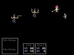 ウディタ製のRPGで操作はだいたい矢印キーで移動、z決定、xキャンセルとメニュー、cキーでダッシュとか。戦闘はランダムエンカウントのターン制でサイドビューのやや特殊な構成。主人公がゴブリンを倒したりする感じのシナリオとなっている。