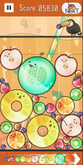 難易度は普通。ステージの大きさは適度で見た目や各段階のサイズも本家に比較的近い印象かな。普通に丁寧に作られていてプレイの感触は良好、個人的にはかなり楽しめました。はい。まぁ本家の面白さに依る部分が大きいんだけどもやっぱりちゃんと再現すると面白くなるんだよなぁ。自分の最高は果物が1万点ちょうど、太陽系が6560点でしたー。
