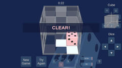 Unity製のゲームで操作はマウスクリックで決定、wsadキーで移動、y、u、h、j、i、kキーで軸の変更とか。3Dのステージ内で自機の赤いサイコロを操作して白いサイコロにぴったり重ねるのが目的。盤面は毎回ランダムに選択される。難易度は普通ぐらいで、盤面によってはかなり簡単だけど結構悩まされることが多い感じですかね。サイコロをこの3Dのステージ内で動かすというのはあまり見掛けずアイディアは悪くはないものの、盤面が完全ランダムであまり頑張って解く気がしなかったりするのは微妙、個人的にはあまり楽しめなかったです。はい。