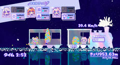 Unity製のゲームで操作はマウスクリック。クリックするたびに左のキャラが金平糖を生成、中央のキャラは自動でそれを右に運び、右のキャラが自動で投入して機関車が加速する。投入前の金平糖を消費して左上のボタンでアップグレードも可能、駅に停めればクリアで経過時間と最高速度が記録される。