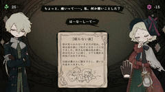 Unity製のゲームで操作はマウスクリックで決定、ドラッグで選択とか。中央に表示される現在の状況を示すカードを左右のどちらかにドラッグして行動を選んでいく。プレイヤーは兄側で、放っておくと妹の手が勝手に行動を選んだりもする。基本は一本道だけどどれを選ぶかで数値が変動、終盤の行動等でエンディングが分岐する。