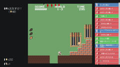 Unity製のゲームで操作は矢印キーで移動、スペースキーで決定とジャンプ、cキーでダッシュ、pキーでお助けアイテム投下とか。某マリオを模した横スクロールのアクションゲームで、プレイ前にランダムな要素を付け足すことで追加のコインを入手できるのが特徴。クリア時にコインを払うことで先に進んで行く。払えないか残機が無くなるとゲームオーバーとなる。