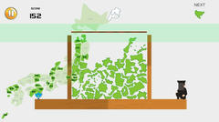 Unity製のゲームで操作はマウスクリック(一部キーボード可)。某スイカゲームのような内容で都道府県をステージ内に落としておなじものが2個くっつくと合体して加点。上の線からはみ出るかステージ外に落ちるとゲームオーバーとなる。