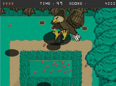 Unity製のゲームで操作はマウスクリックで決定、矢印キーで移動。自機のリスを動かしてどんぐりを拾って穴に持ち埋めれば加点。影に触れると鳥が降りてきて捕まるとゲームオーバーとなる。60秒の時間内で高得点を目指す。難易度は普通ぐらいで、多く拾うと遅くなるので結構すぐ捕まっちゃう感じ。追ってくる敵はいない(たぶん)ので上手くタイミングを掴むのがコツになりますかね。ステージの規模とかは適度で個人的にはそこそこ楽しめました。はい。自分の最高は1453920点でしたー。
