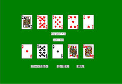 相手と1対1で対戦するポーカー。1回交換制でベットの概念が無いため駆け引きは存在せず、自分が勝つと役に応じた金額が手に入って負けると相手の役の分失う。この対戦且つ役によって収支が変動するというのはあまり見ないルールだね。ただこれが面白いかと言うと微妙。んー、これなら普通の1人用の方がまだ面白いんじゃないだろうか。せめて交換回数が多くて互いに高い役を狙いあう、とかならもう少しは楽しめたかもしれない。