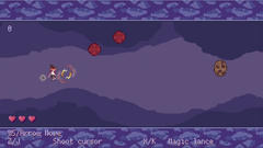 Unity製のゲームで操作はマウスクリックで決定、上下キーで移動、zキーで射撃(cキーで連射)、xキーで槍を放つ。自機を操作してビスケットに攻撃を行い、攻撃が溜まった状態で槍で突くと加点される。自機が直接ぶつかるとライフが減ってこれが無くなるとゲームオーバー、奥まで行けばクリアとなる。難易度は低めで、まぁある程度雑に撃ってもそれなりのスコアは出そうかな。雰囲気やドット絵は悪くは無いけどターゲットがいない暇な区間があったりとなんか退屈な印象もあって個人的にはあまり楽しめなかったよ。自分の最高は12811点でした。