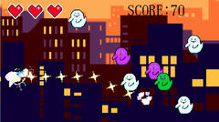 Unity製のゲームで操作はマウスクリックで決定、上下キーで移動、スペースキーで射撃。自機を操作してお化けをひたすら倒していく。左に逃がすとライフが減ってこれが無くなるとゲームオーバーとなる。難易度は低く、敵の数は多くないので余裕で続けて行けるはず。グラフィックは悪くは無いけどゲームとしては単調で個人的にはあまり楽しめなかったです。はい。もうちょい工夫が欲しかったか。自分の最高は5180点で結局飽きてプレイを打ち切ったよ。